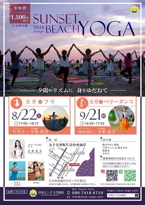 2026年度のサンセットビーチヨガ「片貝海岸」でのスケジュールを発表致します。